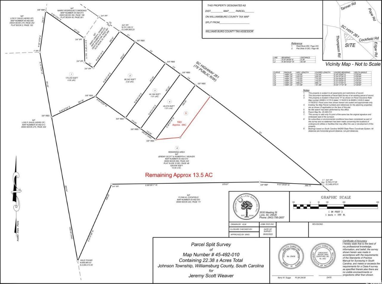 This is a blank slate of approximately 13.5 acres. There are several hundred feet of road frontage on SC 261 and a stone driveway with a gate into the property. In the cleared area, there was once a home on the property, and the well and septic system are still in place. Public water from the town of Hemingway is available at the street (same side of the road). Electric is currently ran to the property. In the back of the property, there is a cleared area in the woods for hunting and a small bridge to access it. There is no zoning in the county so you can do with it, whatever you choose! Looking for a place for your RV? This is a great location for it and there is a 50 amp rv service already set up. RVs can be set up here for 6 months at a time, unlike 30 days in other local areas.